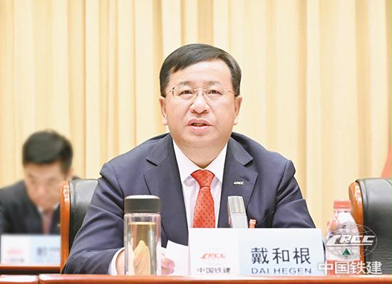 中國鐵建黨委書記、董事長戴和根作題為《堅定信心 迎難而上 為建設世界一流現代化企業團結奮斗》的報告